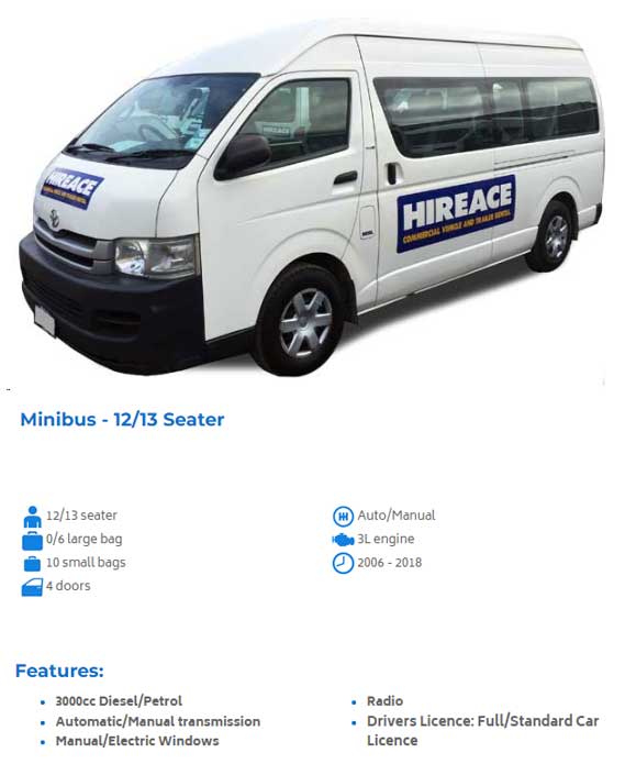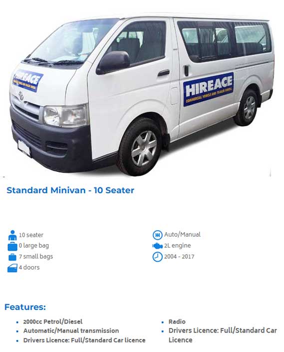 Whether you are looking for a 10 or 12 seater for your next school or club trip, get in touch with Hireace today for minivan options with affordable pricing!